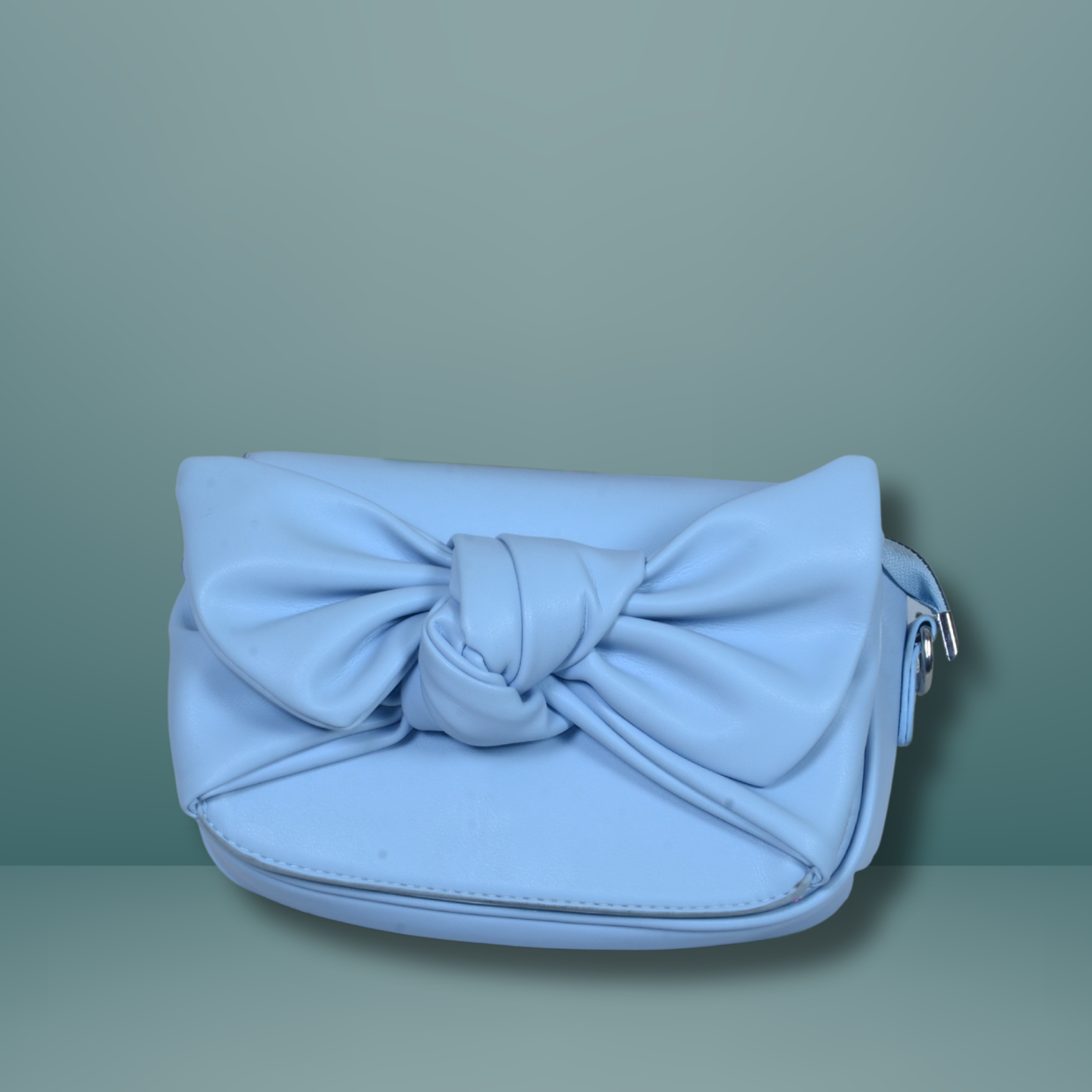 Add a pop of elegance to your look with the Azure Knot Clutch, a statement piece designed to turn heads. Crafted in a serene sky-blue shade, this chic clutch features a bold knotted bow that radiates sophistication and charm.